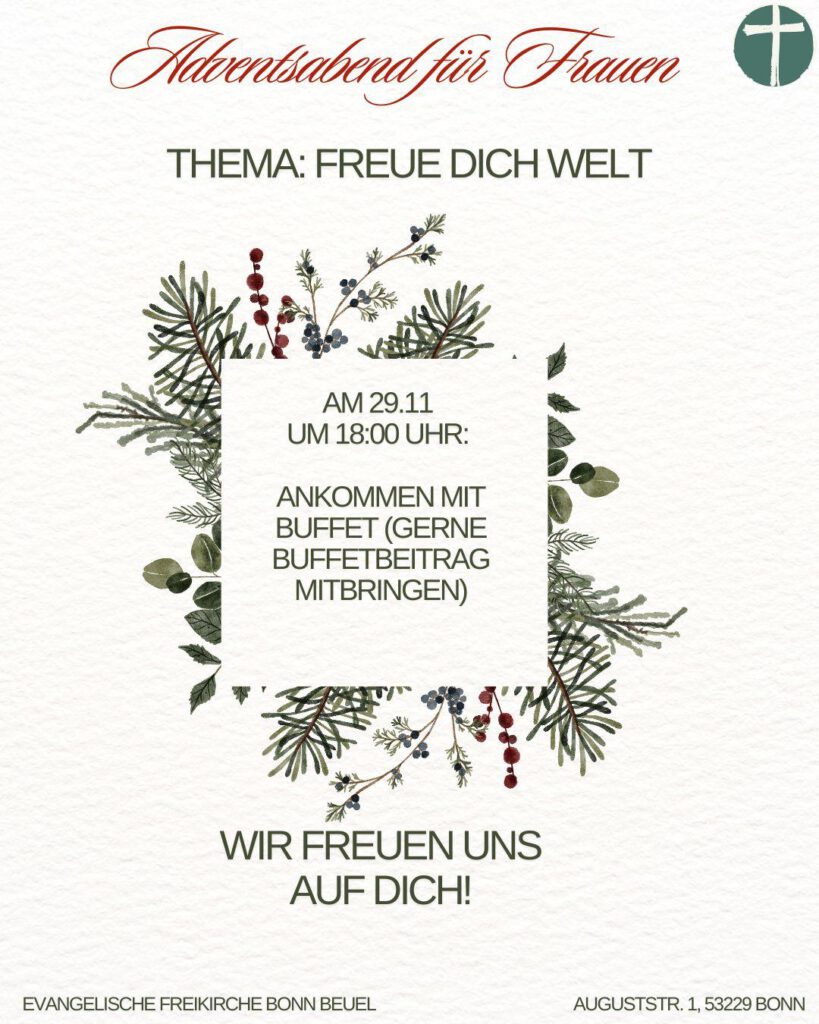 Frauenevent Hier kannst du uns erreichen Auguststraße 153229 Bonn-BeuelE-Mail: info@ev-freikirche-beuel.de Impressum Social Media Facebook-f Youtube Spotify Amazon GottesdienstSonntag | 10:30