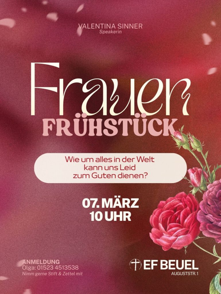 Frauenevent Hier kannst du uns erreichen Auguststraße 153229 Bonn-BeuelE-Mail: info@ev-freikirche-beuel.de Impressum Social Media Facebook-f Instagram Youtube Spotify Amazon GottesdienstSonntag | 10:30
